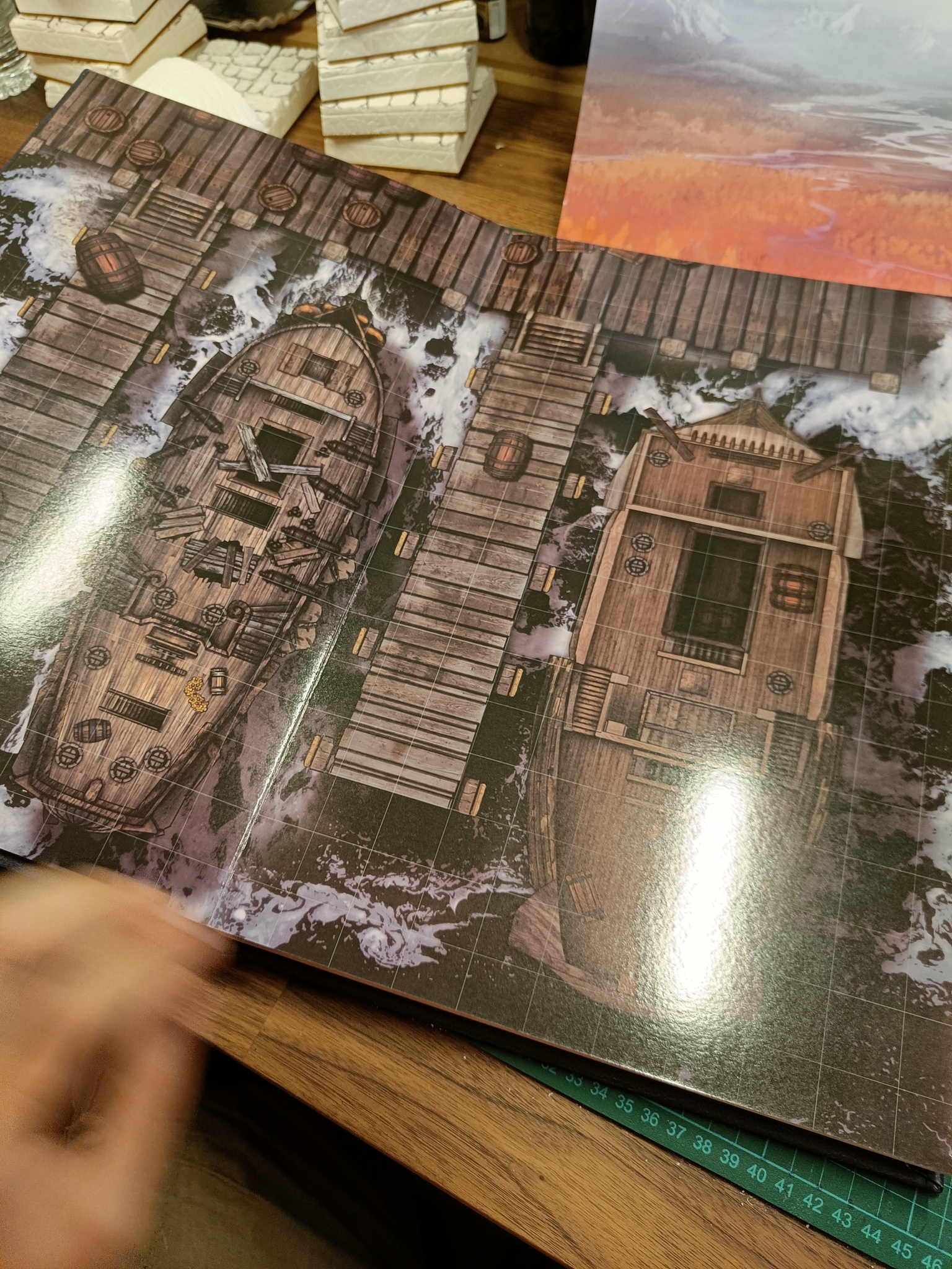 Il y a quelques années, j'ai participé au Kickstarter de cet "Immersive Battlemaps". Un livre en carton rigide où chaque double page représente une carte, quadrillée, prête à accepter n'importe quel combat. Aujourd'hui, je me rends compte qu'il prends la poussière dans mon étagère et j'aimerai le donner à un·e rôliste qui pourrait lui donner une seconde vie.